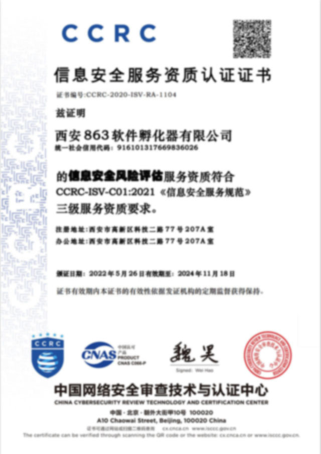 CCRC信息安全服務(wù)資質(zhì)認(rèn)證證書
